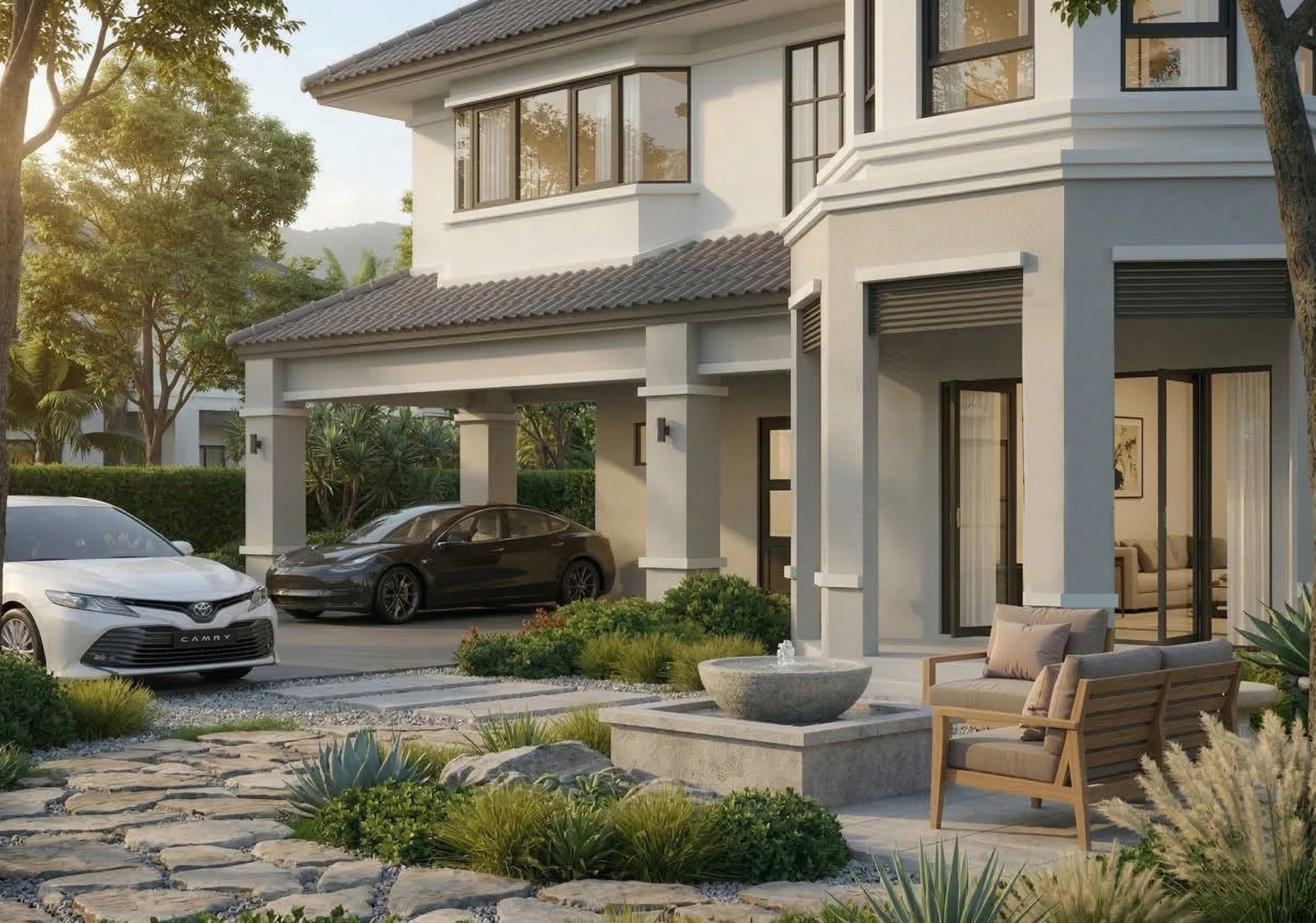 โดดเด่นด้วยรูปโดม 8 เหลี่ยมอันเป็นลักษณะเฉพาะตัว ภายในถูกจัดวางพื้นที่อย่างลงตัว ด้วยหลักการออกแบบที่มีความต่อเนื่องและใช้ประโยชน์ได้อย่างทุกจุด ภายในบ้านให้เข้ากับสไตล์ของครอบครัวยุคใหม่