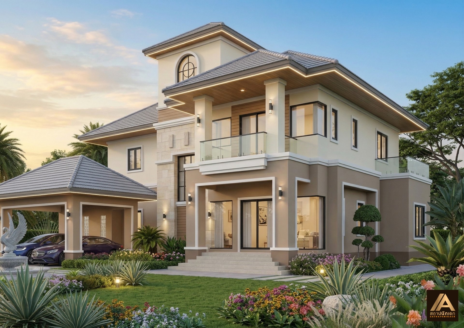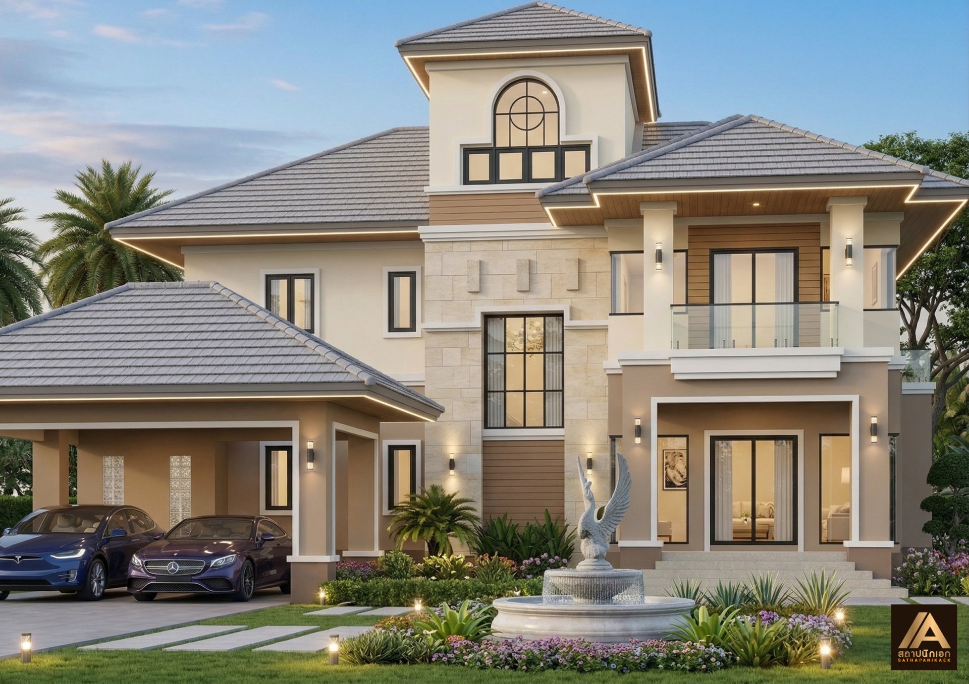 โดดเด่นด้วยรูปทรงโดมทรงสูงหน้าบ้าน เพิ่มความหรูดูสง่าและมีความภูมิฐานอย่างลงตัว การจัดวางพื้นที่ภายในและพื้นที่ต่างๆ ของบ้านถูกออกแบบให้กับครอบครัวสมัยใหม่ พร้อมห้องนอนที่มีส่วนแต่งตัว พร้อมห้องน้ำในตัวทุกห้อง