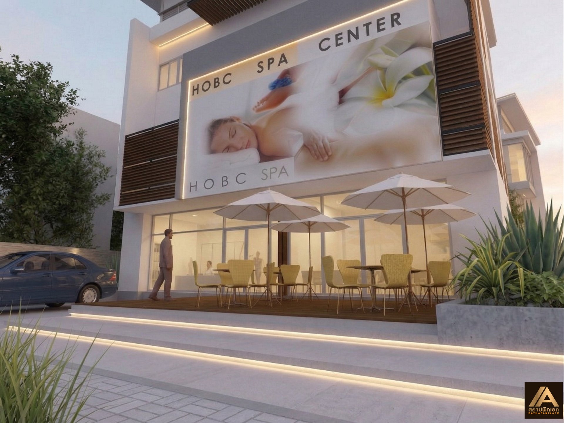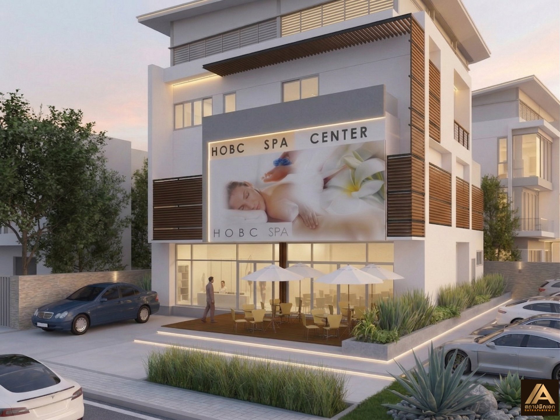 โอมสปาหน้ากว้างสำหรับธุรกิจสปาขนาดกลางที่พร้อมไปด้วยศักยภาพในด้านต่างๆ ทั้งภาพลักษณ์ ภายนอกและประโยชน์ใช้สอยภายใน ด้วยพื้นที่ส่วนพาณิชย์ที่กว้างขวาง กว่า 400 ตารางเมตรทำให้ร้องรับการขยายตัวของธุรกิจ ได้เป็นอย่างดีมีห้องสปาที่ครบครัน ห้องซาวน่า ห้องทำเล็บและพื้นที่ธุรกิจเสริมบริเวณมุมนั่งเล่นหน้าตัวอาคาร ที่จะช่วยสร้างมุมมองใหม่ๆ ให้น่าใช้บริการยิ่งขึ้น