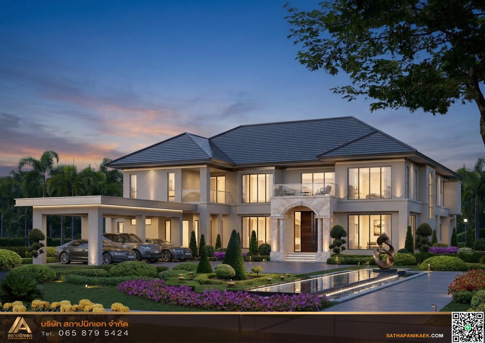 โอ่อาภูมิฐานด้วยคฤหาสน์สไตล์ร่วมสมัย Modern Luxury ที่ตอบสนองทุกความต้องการอย่างลงตัว โดดเด่นด้วยฟังก์ชั่นที่ครบถ้วนที่สะท้อนรสนิยมและความหรูหราอย่างมีระดับ สัมผัสประสบการณ์การอยู่อาศัยระดับ Luxury กับสถาปนิกเอกรับสร้างบ้านหรูในแบบที่คุณต้องการ