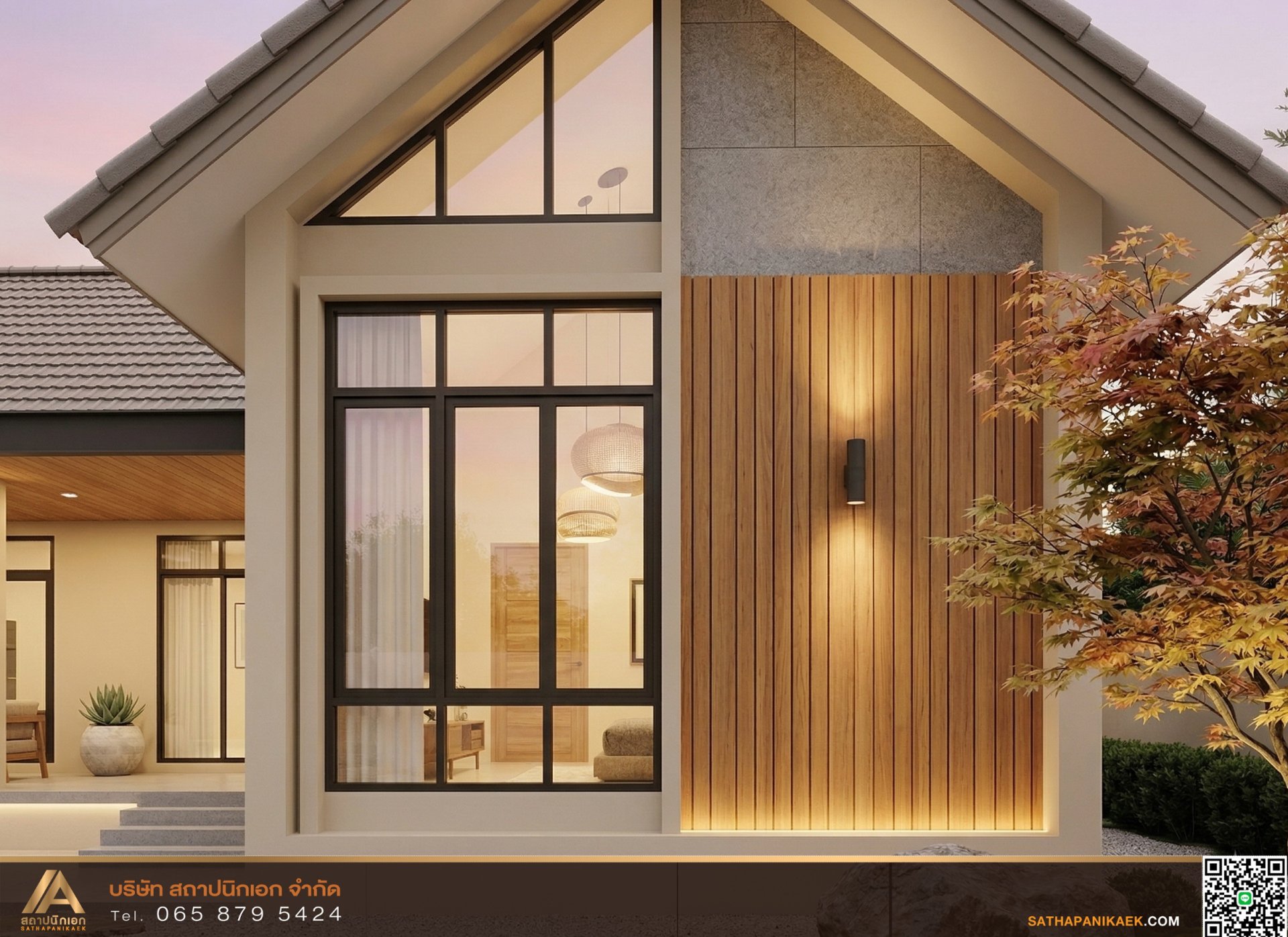 แบบบ้านชั้นเดียว Modern Minimalist กลิ่นอายญี่ปุ่น Muji ดีไซน์ด้วยวัสดุไม้และกระจกบานใหญ่ภายในฟังก์ชั่นครบ 3 ห้องนอนพร้อมระเบียงไม้เทียม ส่วนเพิ่มตกแต่งสวนหินและสระว่ายน้ำตอบโจทย์ความผ่อนคลายสมบูรณ์แบบจริงๆ