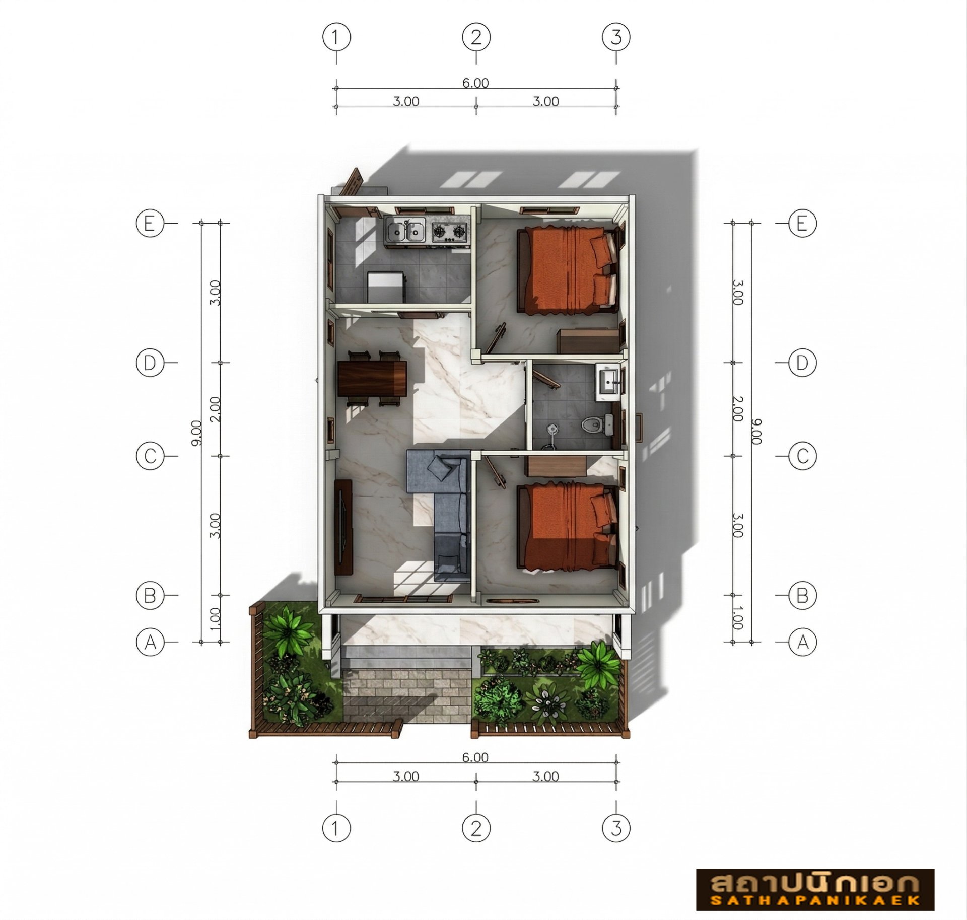แบบบ้านชั้นเดียวสไตล์โมเดิร์นมินิมอล-มูจิ: ดีไซน์ที่อบอุ่น ฟังก์ชั่นครบในสไตล์โมเดิร์นมินิมอล (Modern Minimalist) กลิ่นอายมูจิ (Muji Style) ที่เน้นความเรียบง่ายและอบอุ่น. สัมผัสการออกแบบจากสถาปนิกเอก