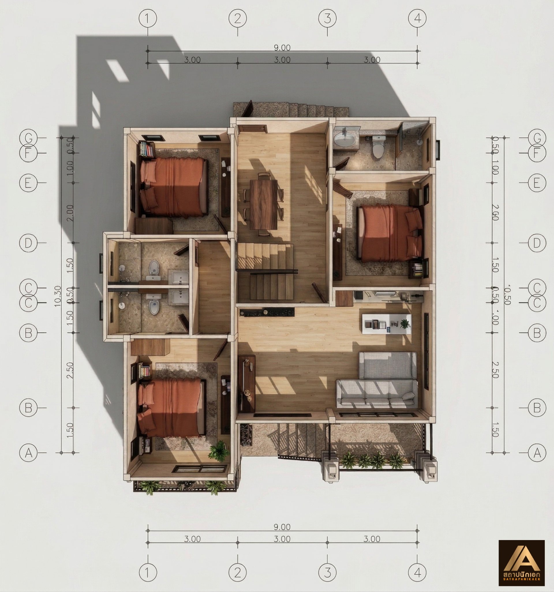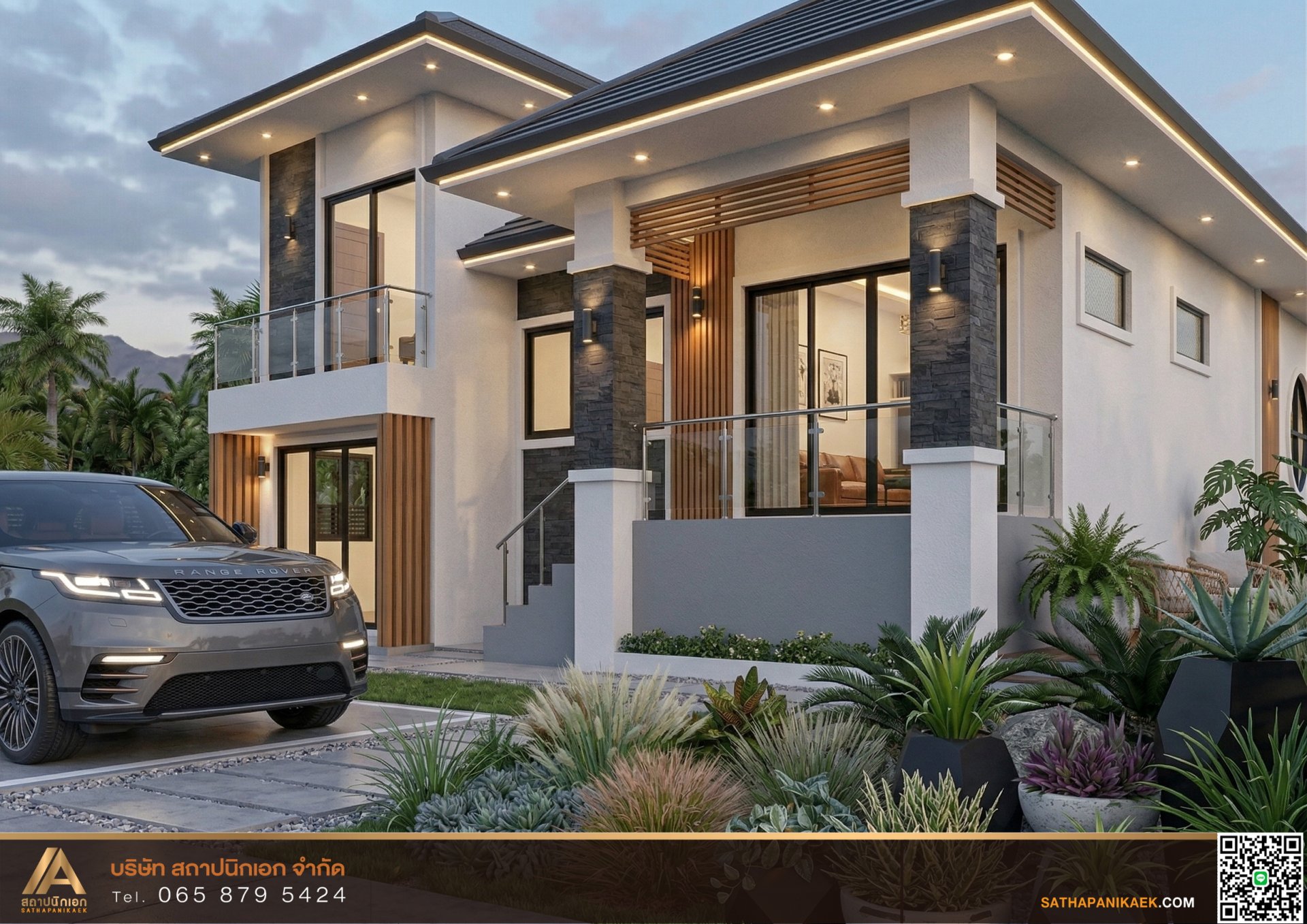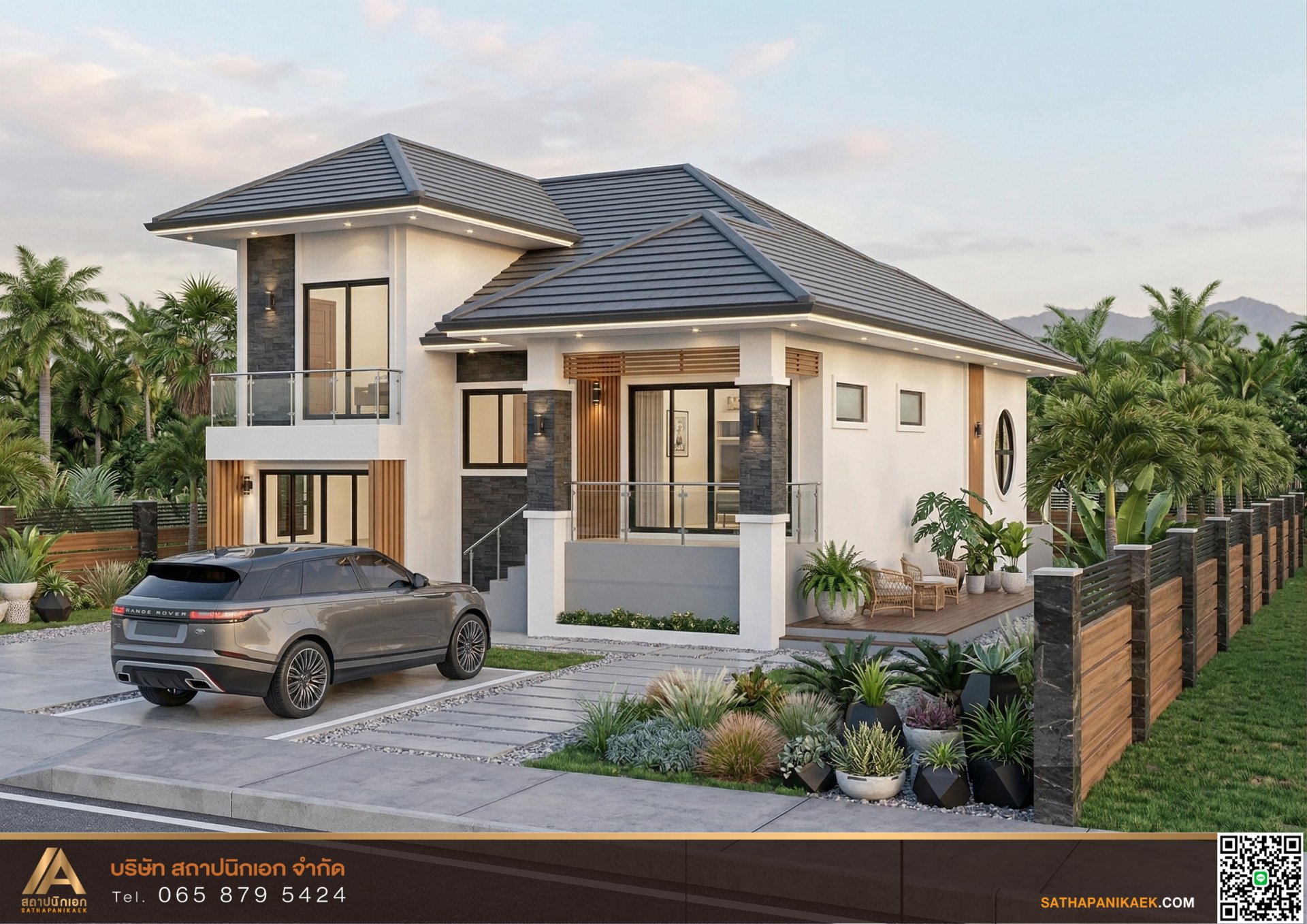 แบบบ้านเล่นระดับหรูหราสไตล์โมเดิร์นคอนเทมโพรารี (Modern Contemporary) หรือโมเดิร์นทรอปิคอลที่มีลักษณะผนังกระจกบานใหญ่ พร้อมระเบียงพักผ่อนตลอดแนวอาคารที่สัมผัสกับวิวทิวทัศน์ที่สวยงามได้ในทุกพื้นที่ ดีไซน์เรียบง่ายแต่หรูหราในการตกแต่งบ้านที่ต้องการความผ่อนคลายในการอยู่อาศัย