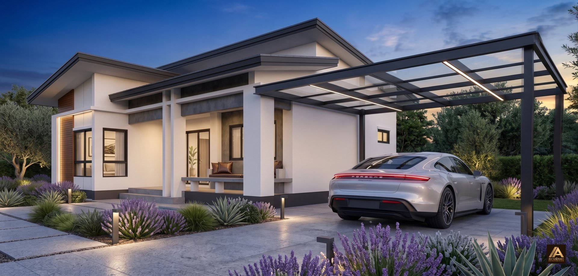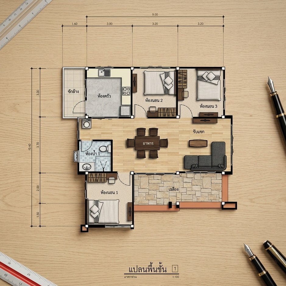 แบบบ้านชั้นเดียวสไตล์ (Modern Tropical) ขนาด 4 ห้อง 3 ห้อง แบบบ้านสไตล์โมเดิร์น ดีไซน์เรียบหรูพร้อมกระจกบานใหญ่ที่ช่วยให้พื้นที่ภายในกับธรรมชาติภายนอกต่อเนื่องกันได้ด้วยดี ตอบโจทย์ไลฟ์สไตล์ครอบครัวยุคใหม่ ต้องการบรรยากาศพักผ่อนแบบพูลวิลล่า (Pool Villa) ในทุกๆ วัน จุดเด่นและฟังก์ชั่นการใช้งาน:ฟังก์ชั่นการทำงาน:จัดเต็มด้วย 4 ห้องนอน 3 ห้องน้ำ ดีไซน์ภายนอกที่โดดเด่น:ในช่วงระหว่างโทนสีเทา-ขาวดูดีภูมิฐานส่วนประกอบต่างๆ ระแนงไม้ที่ทำให้คุณรู้สึกถึงการลดความถี่ของกระด้างของตัวอาคาร