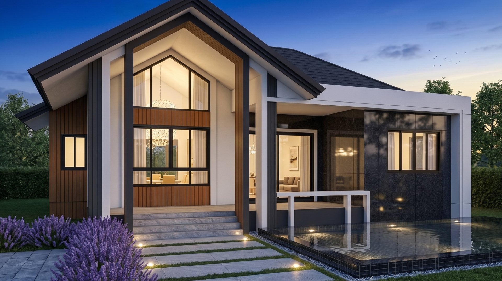 แบบบ้านชั้นเดียวสไตล์โมเดิร์นมินิมอล ไอเดียแบบบ้านชั้นเดียวสไตล์ (Modern Minimalist House) ที่โดดเด่นไม่ซ้ำใครด้วยเอกลักษณ์ ดีไซน์ที่ผสมผสานความเรียบง่ายของโทนสีขาวเข้ากับความอบอุ่นของวัสดุลายไม้ พร้อมประตูกระจกบานใหญ่ที่เปิดรับแสงธรรมชาติได้อย่างเต็มที่ ตอบโจทย์ไลฟ์สไตล์คนรุ่นใหม่ที่หลงใหลในสถาปัตยกรรมที่เรียบหรูและมีเอกลักษณ์เฉพาะตัว